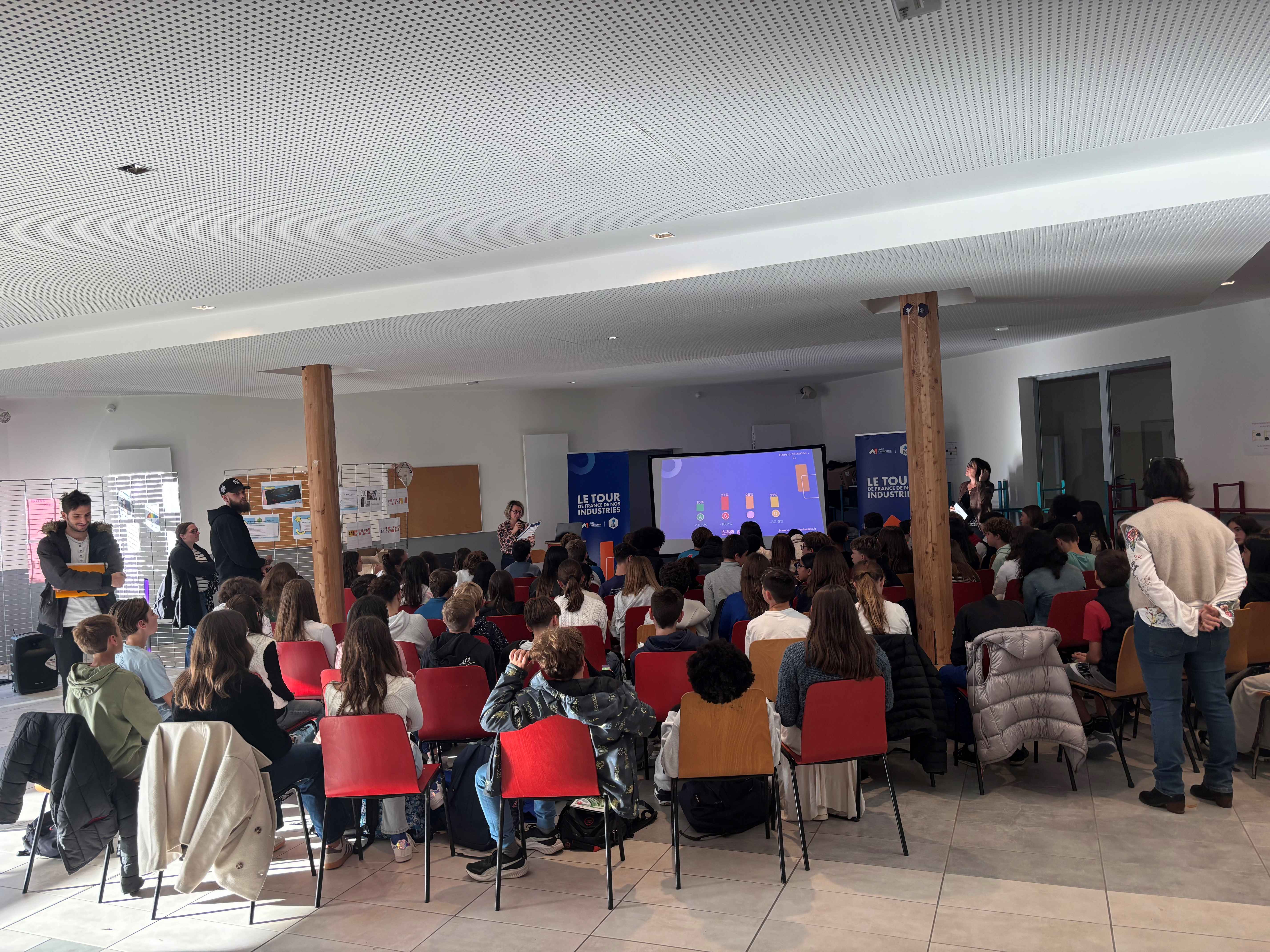 Ce jeudi 6 novembre, l'OPCO2I (Opérateurs de Compétences InterIndustrielles) est venu anikmer un quiz ludique auprès de 3 classes de 4ème qui ont ainsi pu tester leurs connaissances et leurs préjugés sur le monde de l'industrie.